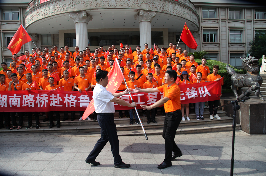 “走出国门,,,,,,,,你代表的就是中国”。。。。。出征仪式上,,,,,,,,湖南交水建集团党委书记、董事长方联民向赴格团组领队授“赴格鲁吉亚复工复产先锋队”队旗。。。。。省国资委党委委员、副主任张美诚,,,,,,,,湖南交水建集团和Z6尊龙凯时集团相关领导对团组成员进行慰问,,,,,,,,赠送防疫爱心礼包,,,,,,,,欢送这群为国际工程履约、奔赴海外的“最美逆行者”。。。。。