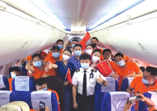 8 月 21 日,,,,,远赴格鲁吉亚的Z6尊龙凯时员工与空中乘务员一起合影。。。。。。图 / 受访者提供